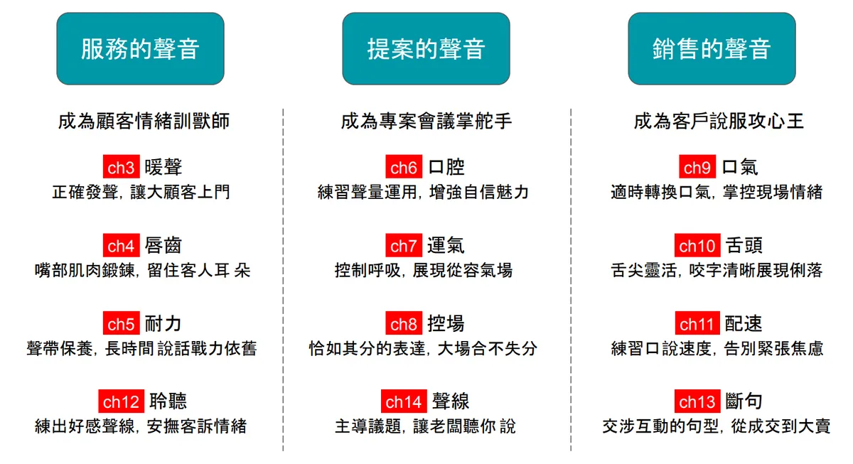 ☑ 讓顧客買單你的推銷,用聲線展現自信、親和,從信賴到成交。
